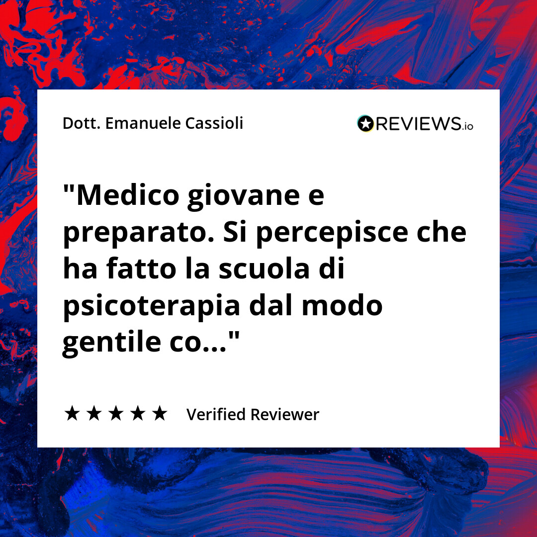 Ringrazio il dott. Cassioli che da subito mi ha fatto sentire accolto e ascoltato. Professionista serio, affidabile e molto empatico. Ho apprezzato molto il tempo che ha dedicato alle spiegazioni della terapia che mi ha prescritto.